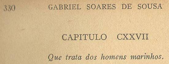 Não há dúvida senão que se encontram na Bahia e nos recôncavos dela muitos homens marinhos, a que os índios chamam pela sua língua