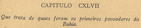 Os primeiros povoadores que viveram na Bahia de Todos os Santos e sua comarca, segundo as informações que se têm tomado dos índios muito antigos,