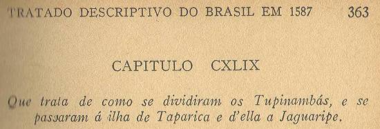 E em tempo que os portugueses tinham já povoado este Rio de Jaguaripe, houve na sua povoação grande ajuntamento de aldeia dos índios ali vizinhos,
