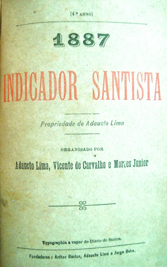 Em 1887 era publicado pelo quarto ano o Indicador Santista  - 1887, de Adaucto Lima, organizado por ele junto com Vicente de Carvalho e Moraes Júnior e impresso na Typographia a Vapor do Diário de Santos, (exemplar na biblioteca da Sociedade Humanitária dos Empregados no Comércio de Santos), aqui reproduzido em seus trechos mais significativos: