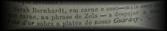 Sarah Bernhardt ouviu dizer do Brasil naturalmente o que em geral se diz de nós na