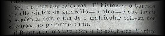 cima dava com os ossos na cadeia. E enquanto o caipira desolado fazia-lhe saber que o conselheiro lhe havia dito exatamente o contrário, o Braguinha