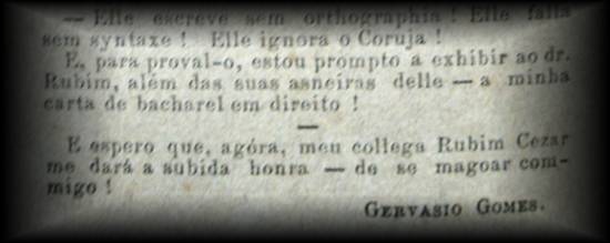 O então redator do Diário de Santos, bacharel Rubim Cezar, investiu contra mim