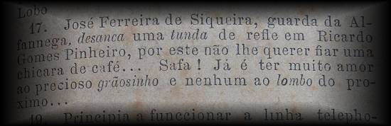 27. A polícia dá caça aos gatunos e engaiola grande número deles no viveiro do frei Abranches (N.E.: no exemplar consultado, consta, manuscrita por algum leitor, a observação: "[o carcereiro: Fco. G. de Abranches!]").