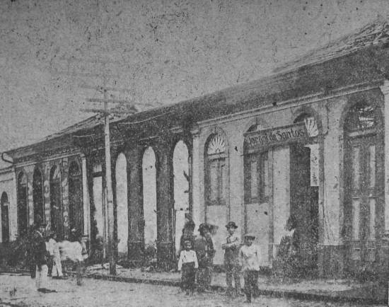 O prédio incendiado onde funcionaram a Livraria Magalhães e o Jornal de Santos, à Praça dos