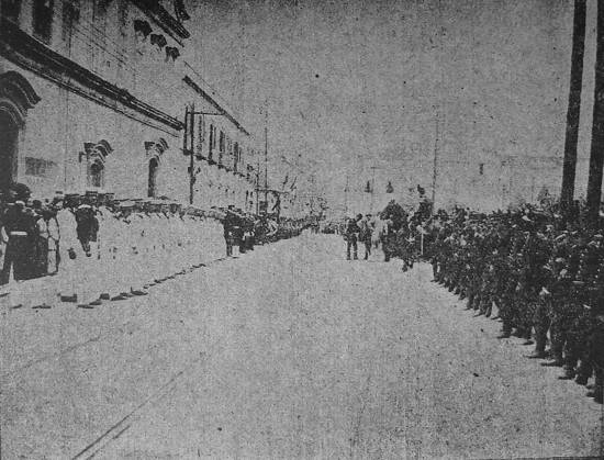 Formatura de marinheiros do São Paulo, do Vinetta e destacamento policial, à porta