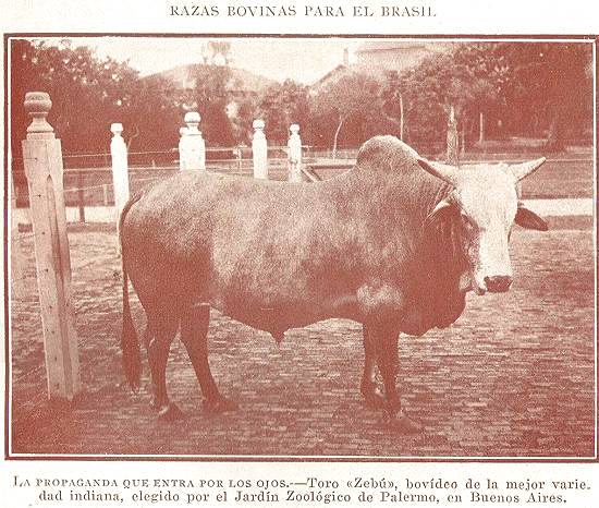 RAÇAS BOVINAS PARA O BRASIL - A propaganda que entra pelos olhos - Touro Zebu, bovino da melhor variedade indiana, escolhido pelo Jardim Zoológico de Palermo, em Buenos Aires