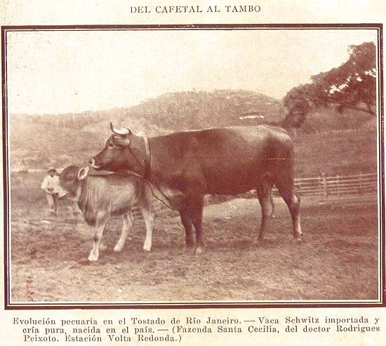 DO CAFEZAL AO TAMBO (N.E. - regionalismo gaúcho: estabelecimento onde são mantidas as vacas para a venda do leite) - Evolução pecuária no Estado do Rio de Janeiro - Vaca Schwitz importada e cria pura nascida no país (Fazenda Santa Cecília, do doutor Rodrigues Peixoto. Estação Volta Redonda)