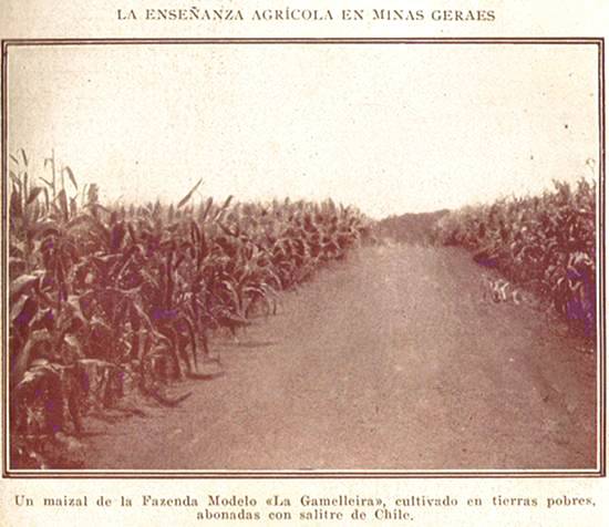O ENSINO AGRÍCOLA EM MINAS GERAIS - Um milharal da Fazenda Modelo "A Gameleira", cultivada em terras pobres, abonadas com salitre do Chile