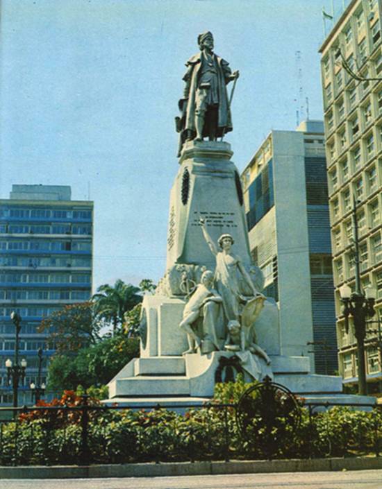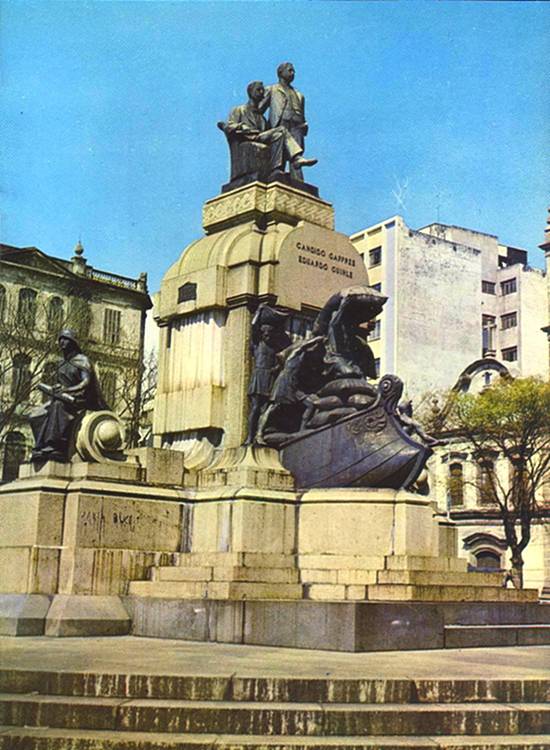 Praça Barão do Rio Branco e monumento aos construtores do porto santista, Gaffrée e Guinle