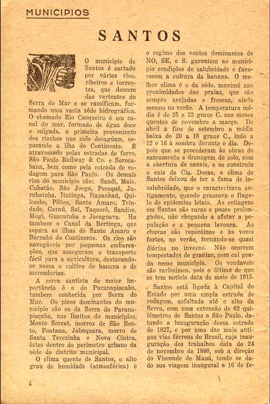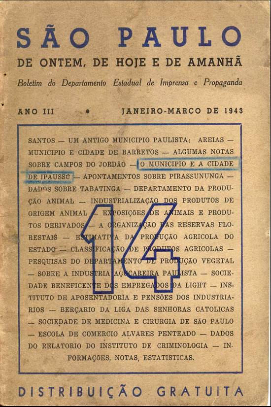 No período de governo do presidente Getúlio Vargas, foi criado o Departamento de Imprensa e Propaganda (DIP), e em São Paulo funcionava o Departamento Estadual de Imprensa e Propaganda (DEIP), que em 1943 - em meio à Segunda Guerra Mundial - editava o boletim São Paulo de Ontem, Hoje e Amanhã, já em seu terceiro ano na edição 14, de janeiro-março de 1943, com impressão na Empresa Gráfica da "Revista dos Tribunais" Ltda. (EGRT), de São Paulo/SP. O exemplar é preservado no Acervo do Estado de São Paulo (acesso em 6/10/2012 - ortografia atualizada nesta transcrição das páginas 3 e 4):