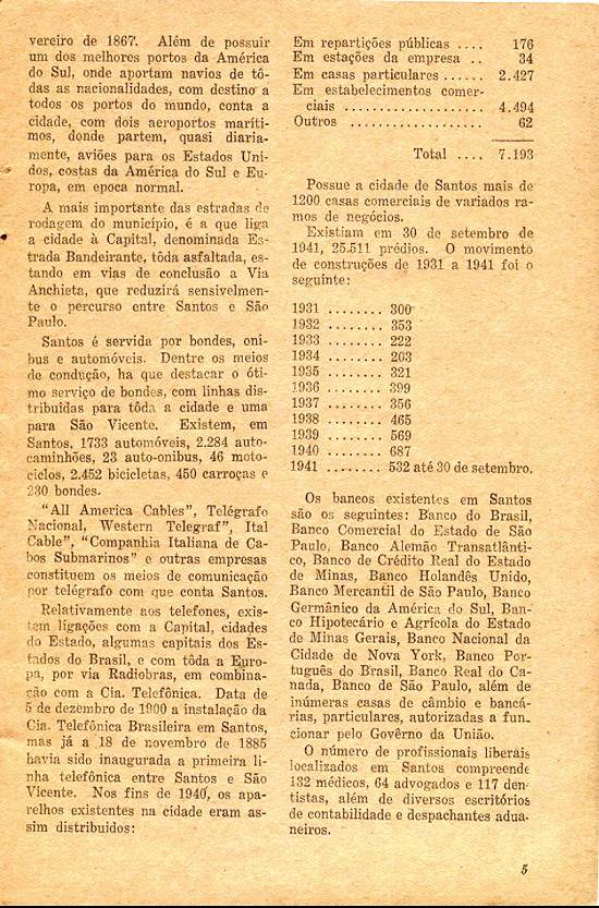 Existiam, em 30 de setembro de 1941, 25.511 prédios. O movimento de construções de 1931 a 1941 foi o seguinte: