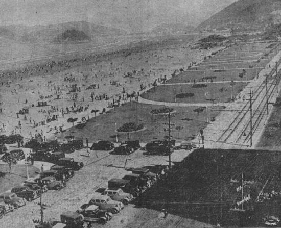 "No plano superior, aparece um aspecto antigo da praia do Gonzaga;..."
