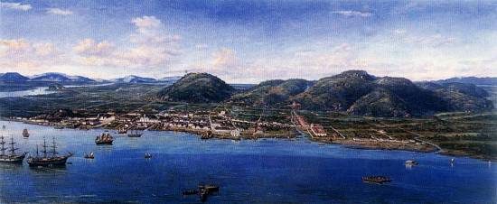 Benedito Calixto: Panorama de Santos (1822), óleo sobre tela (136 x 300 cm)