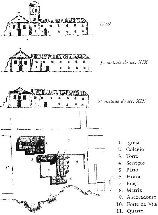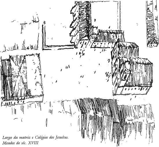 lado, ficava a Matriz ou igreja paroquial, com sua fachada formando ângulo reto com a do colégio. Este último e a igreja jesuíta tinham face para o