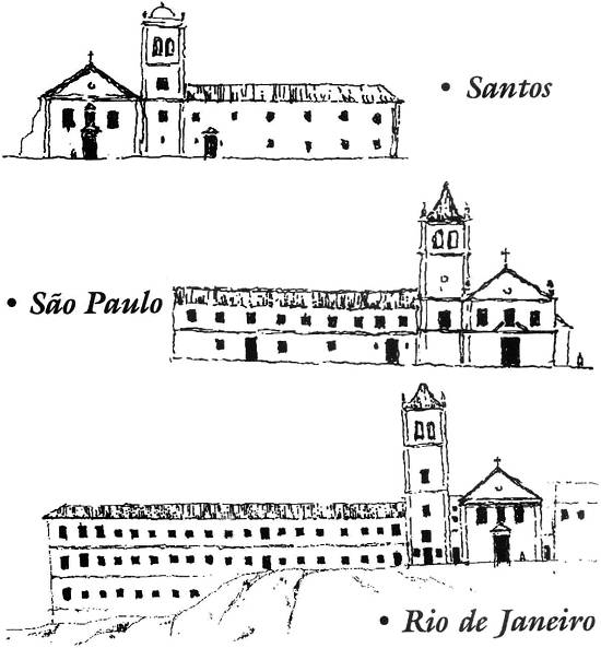 Analisando antigas imagens das igrejas de Santos e Rio de Janeiro, observa-se uma