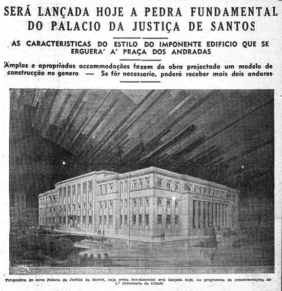 da pedra inaugural do Palácio da Justiça de Santos, à praça dos Andradas, marcada para as 14 horas.