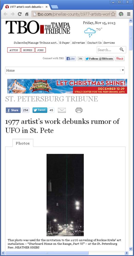 St. Petersburg Tribune, de autoria de Paul Guzzo, refuta o suposto avistamento nessa cidade dizendo: