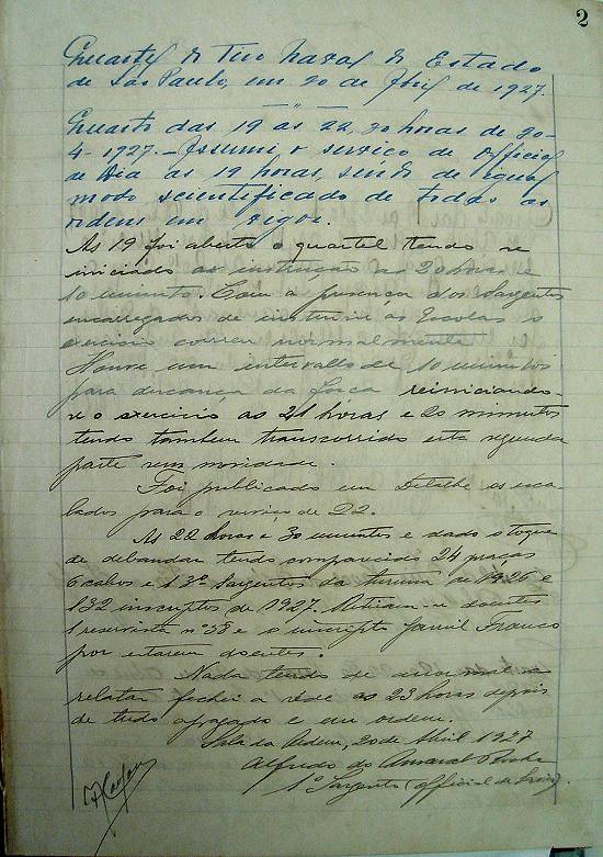 do Estado de São Paulo, em que um livro de atas com capa de pano preto é usado para os registros dos plantões, a partir de 20 de abril de 1927. Merecem