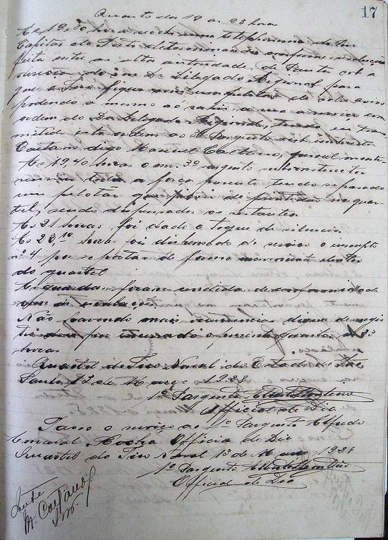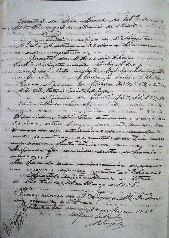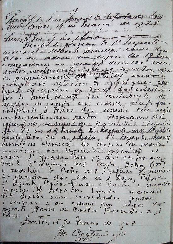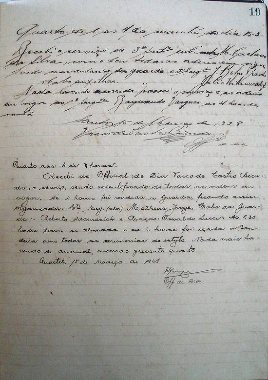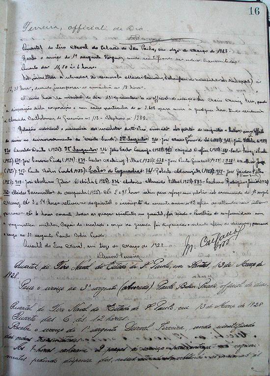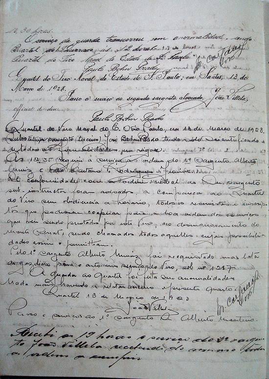 Também integra o acervo um Livro de Quarto dos Oficiais de Serviço do Tiro Naval do Estado de São Paulo, em que um livro de atas com capa de pano preto é usado para os registros dos plantões, a partir de 20 de abril de 1927. Merecem destaque, entre esses registros, os de 10 e 11 de março de 1928, logo após o desabamento da encosta do Monte Serrat: