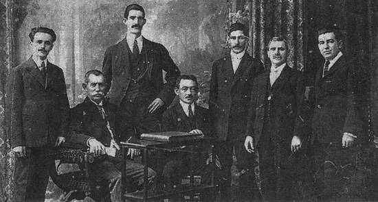 ASSOCIAÇÃO - Funcionários da Associação Comercial de Santos foram retratados em 1920. Da esq. para dir., Manoel Escudero Fernandes, Alberto Veiga, Ovídio de Oliveira Andrade, José Garcia da Rocha,