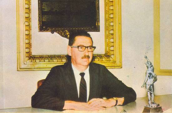 Renato de Freitas Levy, Arnaldo Ferreira dos Santos, José Vale Martins e José Moreira da Silva, em reunião informal, na sede da Associação Comercial de Santos