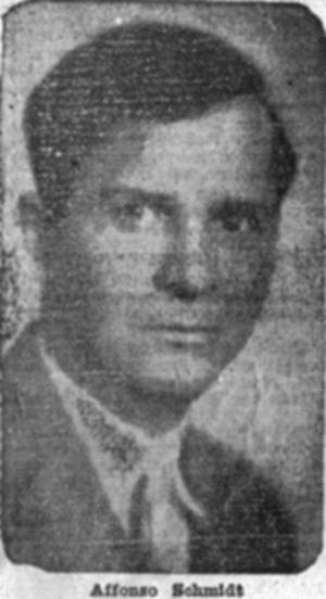 Affonso Schmidt - Nasceu em Santos, no bairro histórico do Cubatão, a 29 de junho de 1890, como filho de João Affonso Schmidt e de d. Odila Bruncken Schmidt.