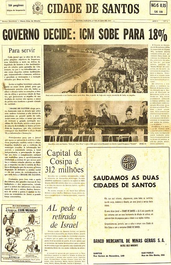 em 30 de junho de 1967, véspera da estréia desse diário em Santos
