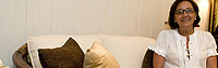 com a vida, e seu semblante risonho e tranqüilo não nega isso. Divide seu tempo entre Santos, Campos do Jordão e o sítio que possui em Botucatu, mas