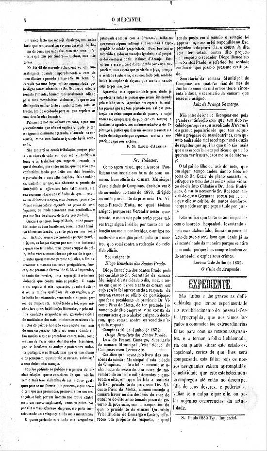 O Mercantil, edição nº 164, de 10 de julho de 1852, página 4