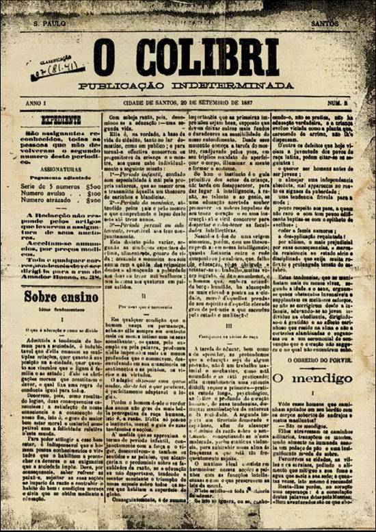 No dia de Nossa Senhora do Monte Serrate de 1887 - ou a 8 de setembro - saiu pela primeira vez o periódico O Colibri, delicado e suave como o beija-flor. Redigido por E. Fontes, Oscar Telengro, Eroaldo Pequeno e F. C. Araújo Moreira. Seu terceiro número circulou a 22 de setembro do mesmo ano (N.E.: na verdade, em 20/9/1887).