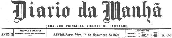 Circulou a 1º de setembro de 1889 o matutino Diário da Manhã. Redator principal o dr. Vicente de Carvalho, ficando sua redação na Rua 15 de Novembro, 5. Redação e oficinas. Propriedade de Pedro Braga & Cia., custando 80 réis o número avulso. 4 páginas.