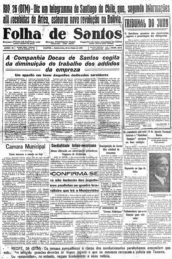 era triste, mas festivo e pleno de atrações naturais e artificiais, Francisco Escudero lançou em agosto de 1930 o jornal Santos Alegre.