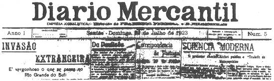Neste mesmo ano, ei-lo em Santos, com redação no Largo do Rosário, atual Praça Rui Barbosa, 36,