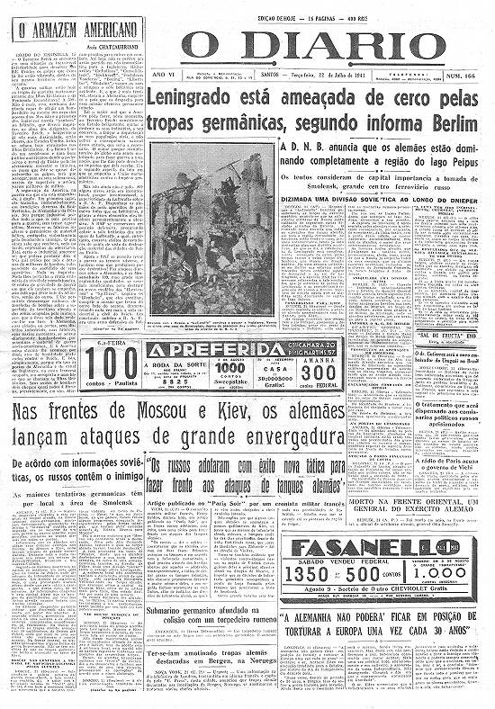 Imagem: reprodução da primeira página de O Diário de 22/7/1941