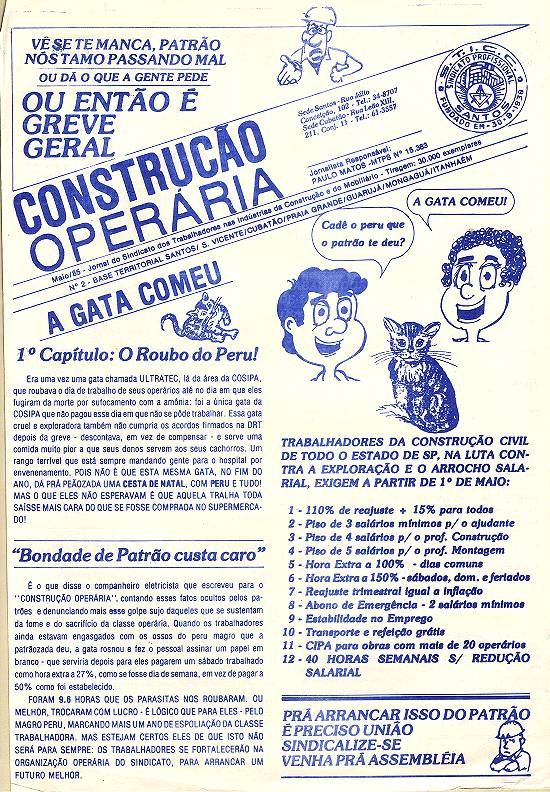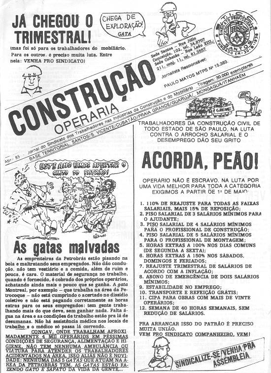 publicação sindical Construção Operária, criada em abril de 1985 para divulgação do Sindicato dos Trabalhadores nas Indústrias da Construção e do