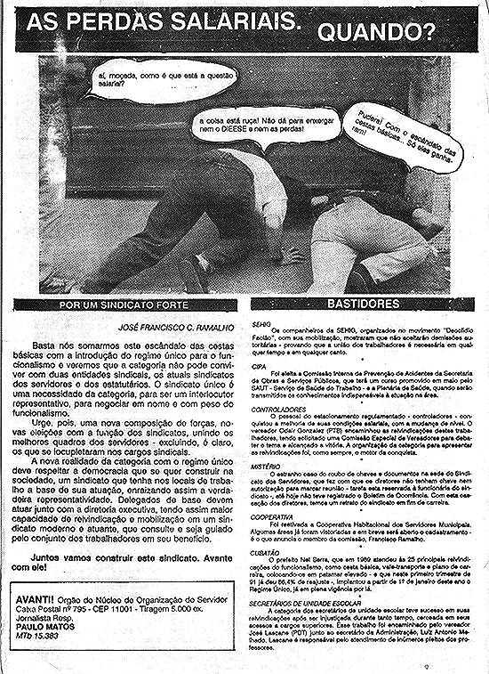 informativo Avanti!, criado em 1991 como órgão de divulgação do Núcleo de Organização do Servidor, e dirigido aos servidores públicos municipais