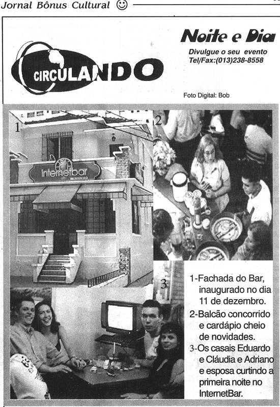 na Internet enquanto tomam choppinho e curtem as opções de um cardápio variado. O InternetBar é o primeiro cibercafé da região, onde além dos tradicionais serviços de bar, oferece aos frequentadores acesso à Internet. No Brasil, por
