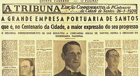 mais de 30 anos às obras grandiosas do porto de Santos, que perpetuaram o seu nome e a sua excepcional capacidade".