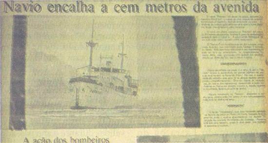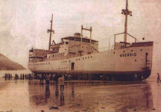 embarcação encalhou, antes de vir para Santos, o navio Recreio ficava em Santa Catarina.
