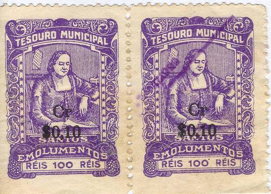 | Esta estampilha do Tesouro Municipal, de 100 réis, alterada a partir de 1/11/1942