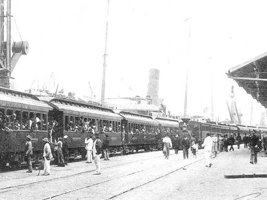 trem de imigrantes". Foto cedida pelo Museu do Porto de Santos, no arquivo de Novo Milênio. Incluída na pág. 88 do arquivo da dissertação
