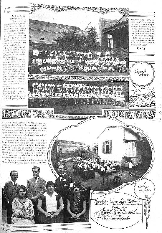Foi fundada a Escola Portuguesa de Santos em 24 de julho de 1921 e devido aos esforços do incansável português, o conceituado prof. Antonio M. Guerreiro, que à causa da educação tem dado o melhor da sua atividade e da sua grande cultura e inteligência, não se poupando a sacrifícios de toda espécie e merecendo todos os louvores.