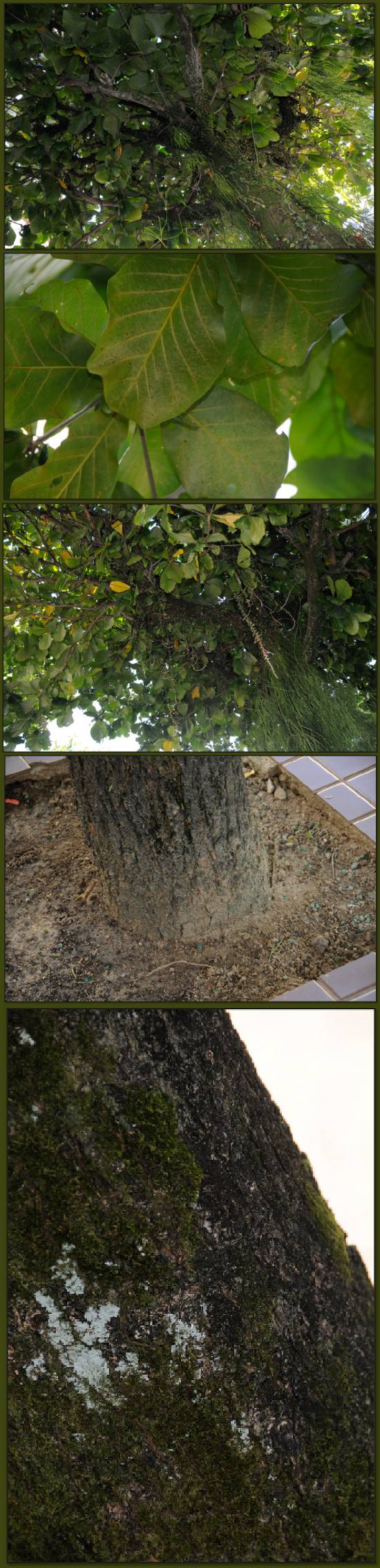 incomum, formada por uma ramagem horizontal e agrupada a espaços regulares no tronco. As folhas são grandes, verdes e gradativamente mudam para o