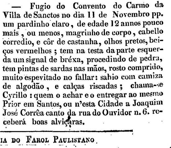 Publicado no jornal O Farol Paulistano, da capital paulista, no número 282, de 12 de dezembro de 1829, página 4 (acervo Memória Biblioteca Nacional Digital)