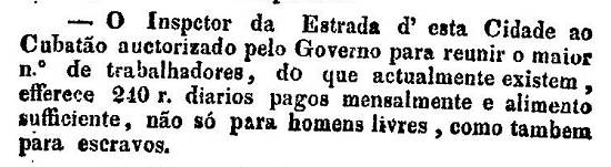 Contrata-se trabalhadores para a execução da estrada do Cubatão