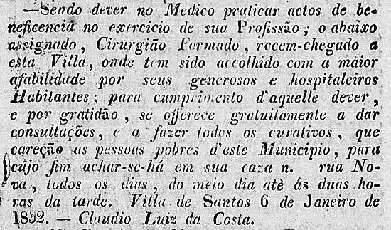 Médico Cláudio Luiz da Costa se oferece para atendimento gratuito à pobreza em Santos