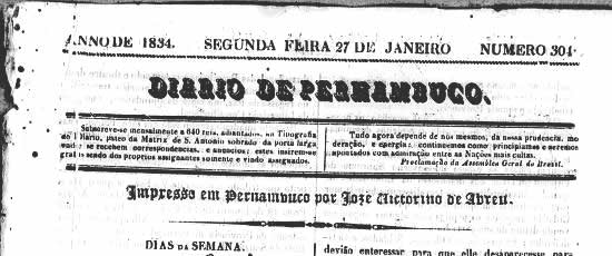 Publicado no jornal Diário de Pernambuco, de Recife-PE, no número 304, de 27 de janeiro de 1834, página 4 (acervo Memória Biblioteca Nacional Digital)
