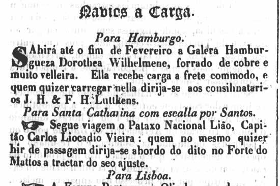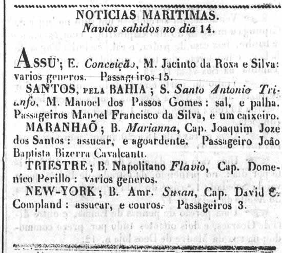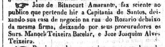 Comerciante avisa que viaja para a Capitania de Santos