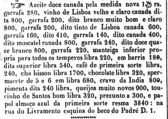 Vende-se na Rua do Livramento "(...) toucinho de Santos bom libra 320 (...)"